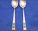 This exquisite set of two spoons from Oneida's Community Coronation collection is a stunning addition to any antique silverware collection. Crafted in 1936, these spoons boast a beautiful art deco style and a intricate pattern that is sure to impress. The silverplate composition adds durability and longevity to the piece. Perfect for use at formal dinners or for everyday display, these spoons are a true treasure for any collector.