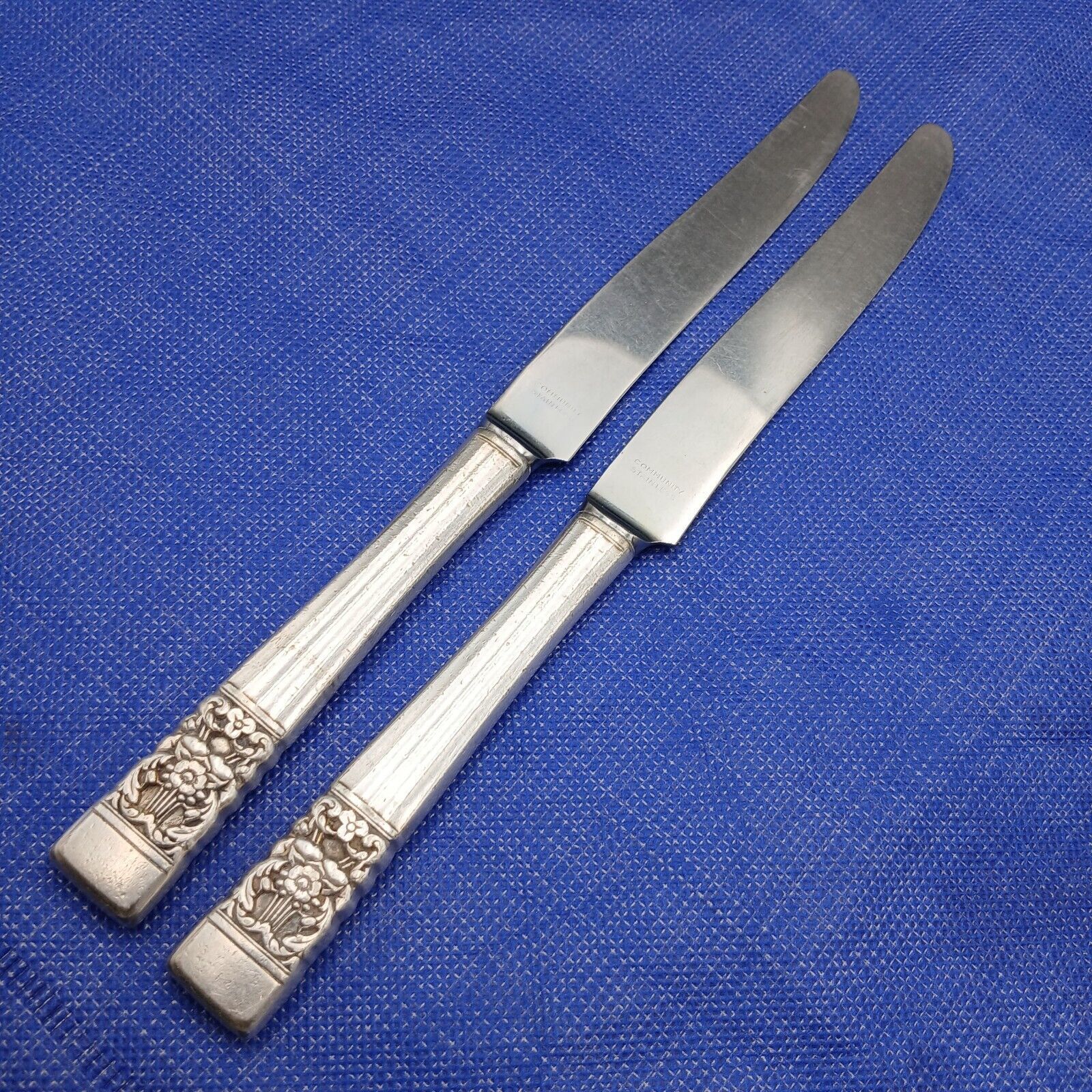 - Oneida Community Coronation 1936 Set 2 Dinner Knives 9.5 " Antique Silverplate