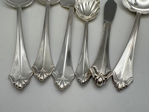 There are six serving pieces included here. They are in very good estate condition with no excessive wear.