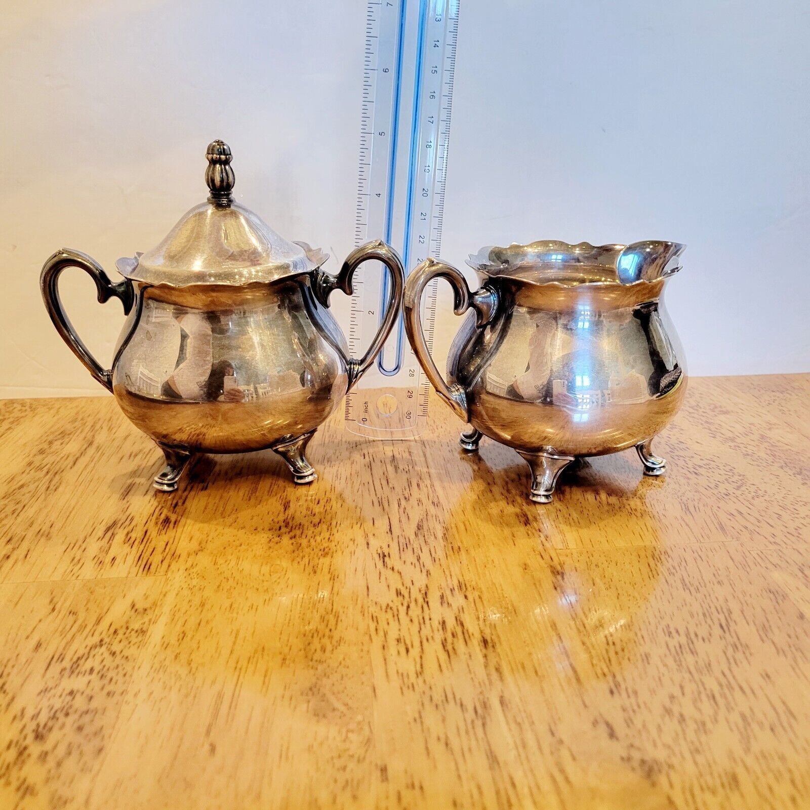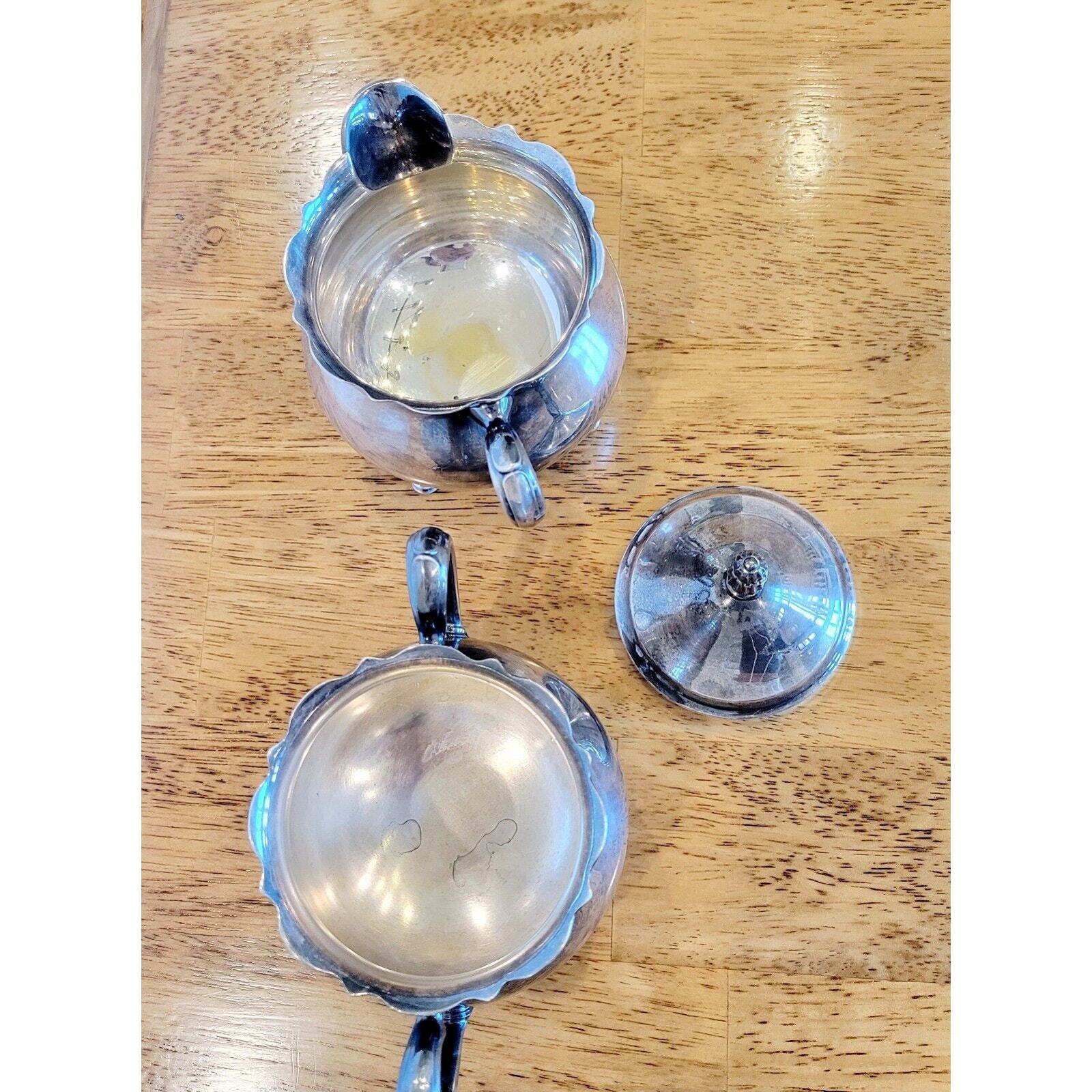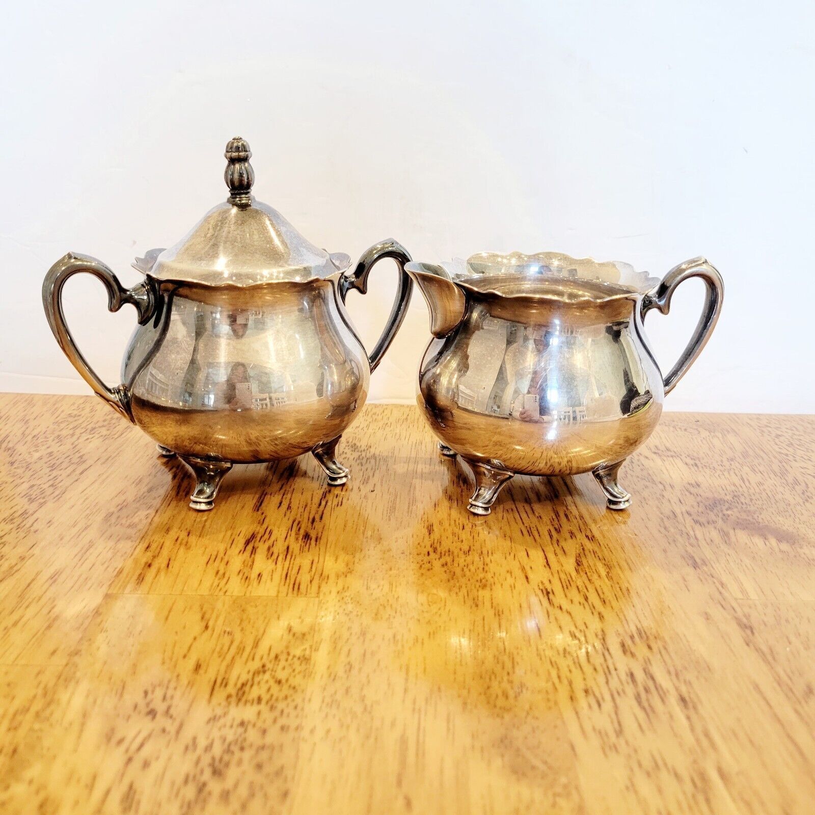 - Oneida Heirloom - COLONIAL SUITE - Silverplate Footed Creamer & Sugar Bowl w Lid