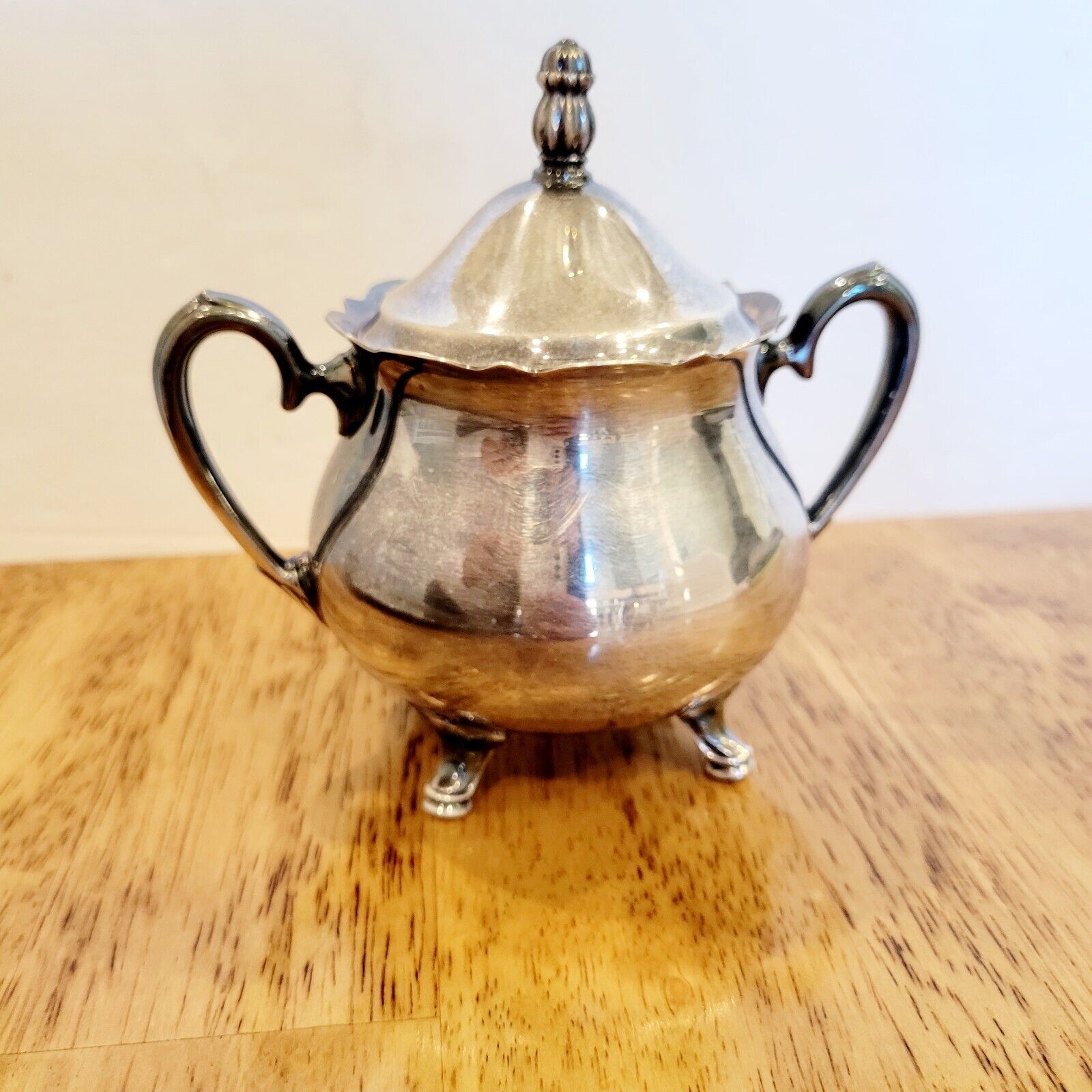 Oneida Heirloom - COLONIAL SUITE - Silverplate Footed Creamer Sugar Bowl w Lid.