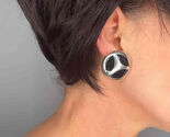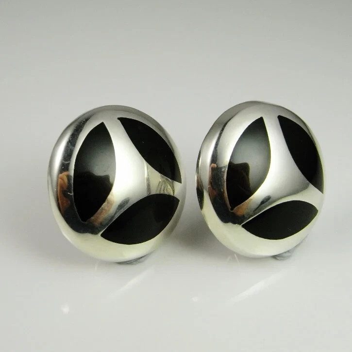 - Onyx Button Puffy Circle Inlay 1980s Stering Silver Clip On eARRINGS OFFeR!