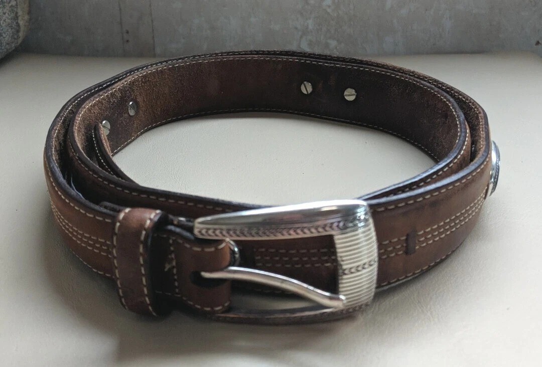 - Onyx by Brighton Men's Belt Brown Leather Fish Concho Size 42". U7