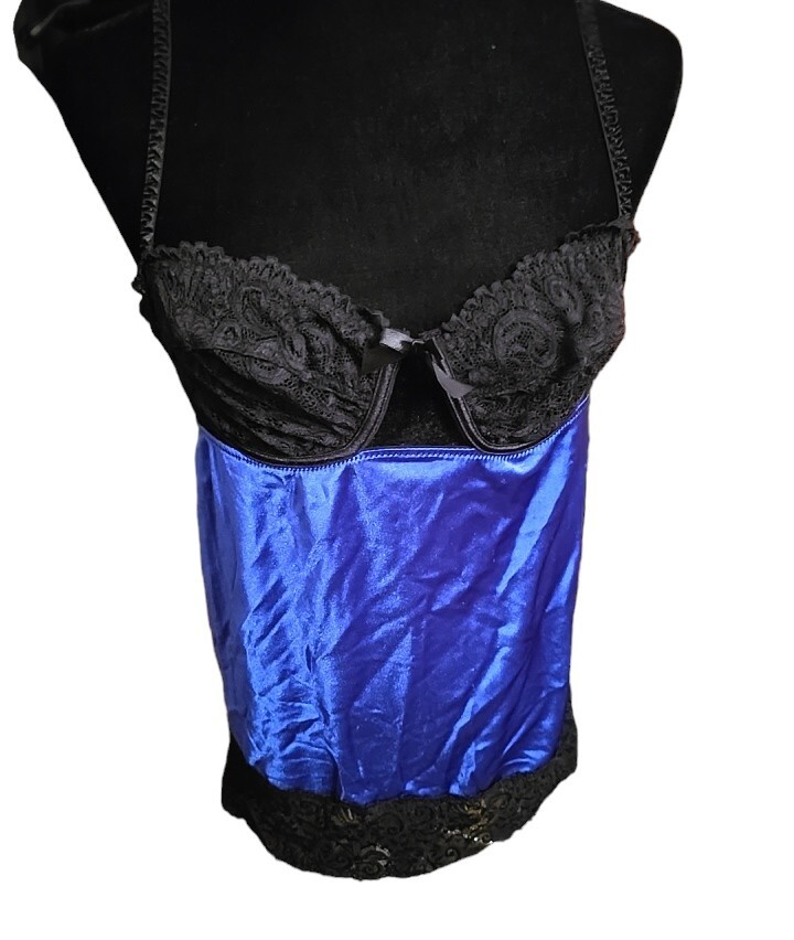 - Ooh La La Cheri PARIS Women's XL Blue & Black Lace Babydoll Sexy Negligee