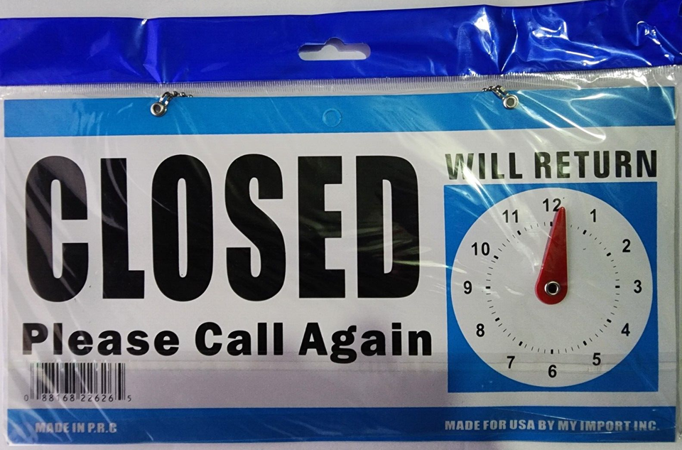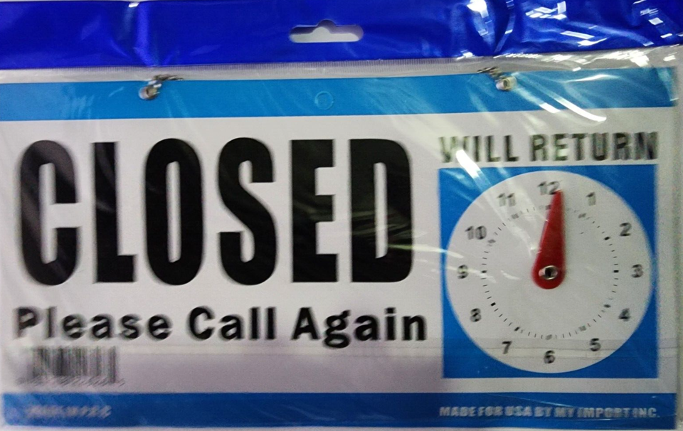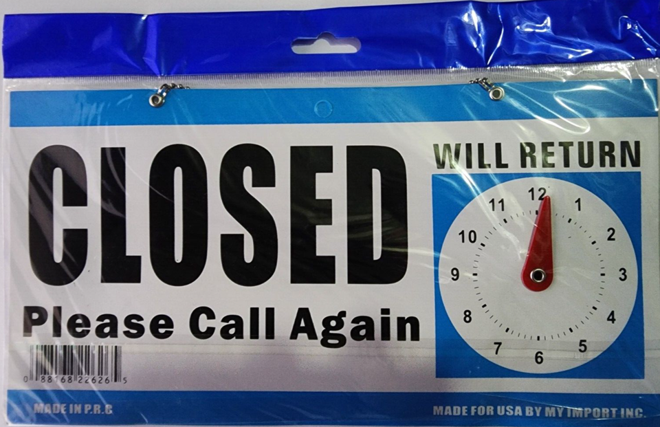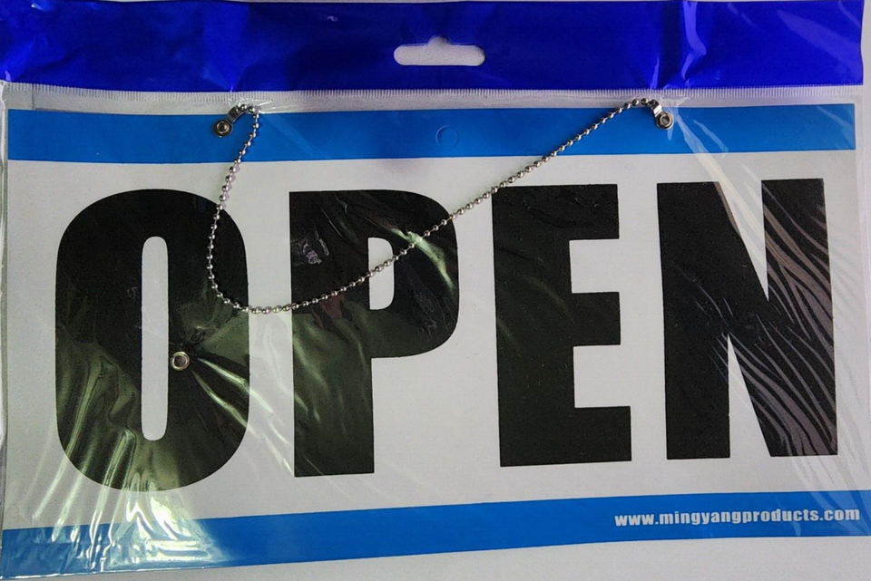 - Open and Closed Sign, Plastic, with Hanging Chain, Dual Sides with “Will Return”