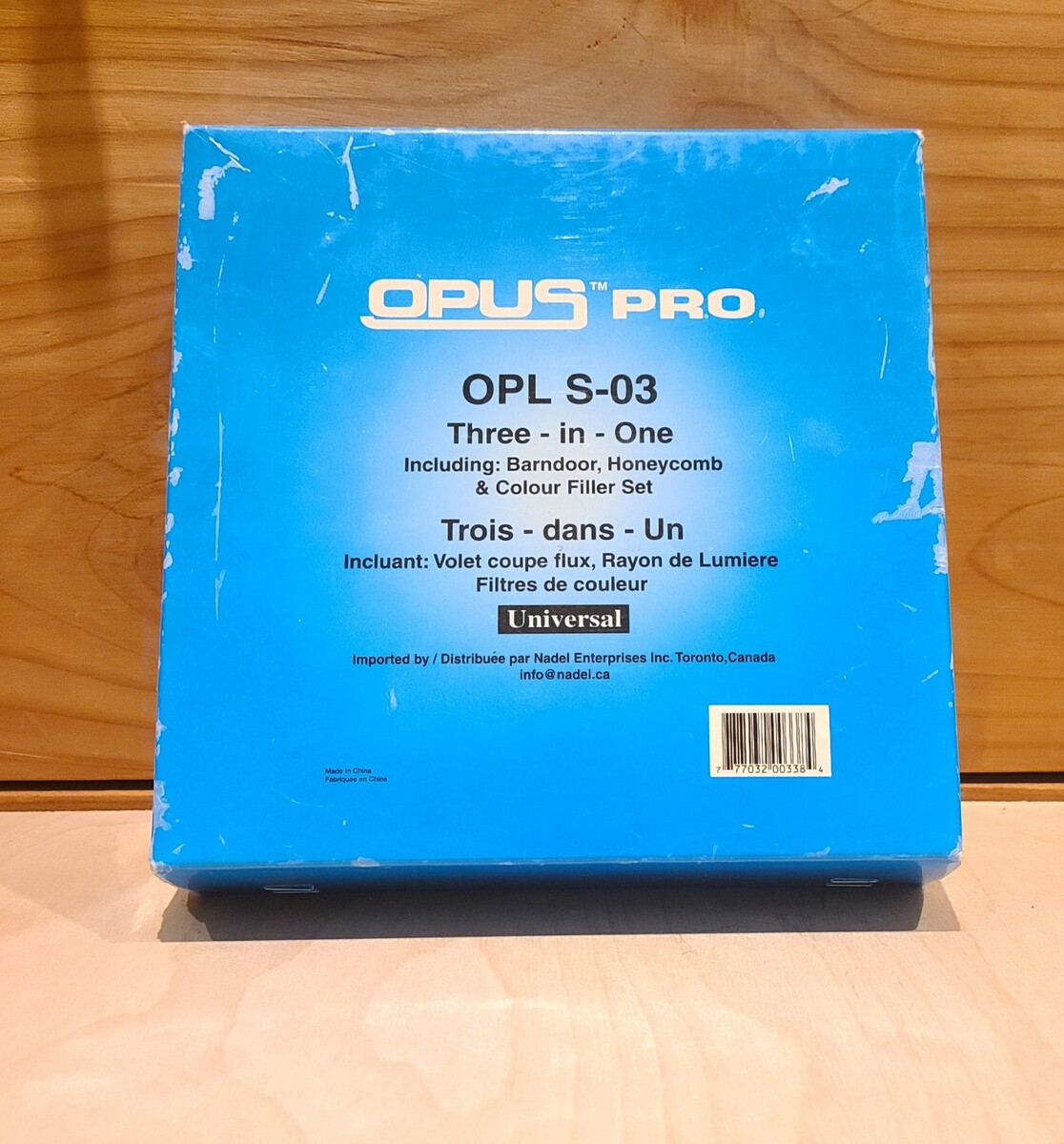 - Opus Pro Opl S-03 Three In One Including Barndoor Honeycomb & Colour Filter Set