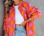 - Orange Plaid Chest Pockets Button-up Turn Down Collar Jacket
