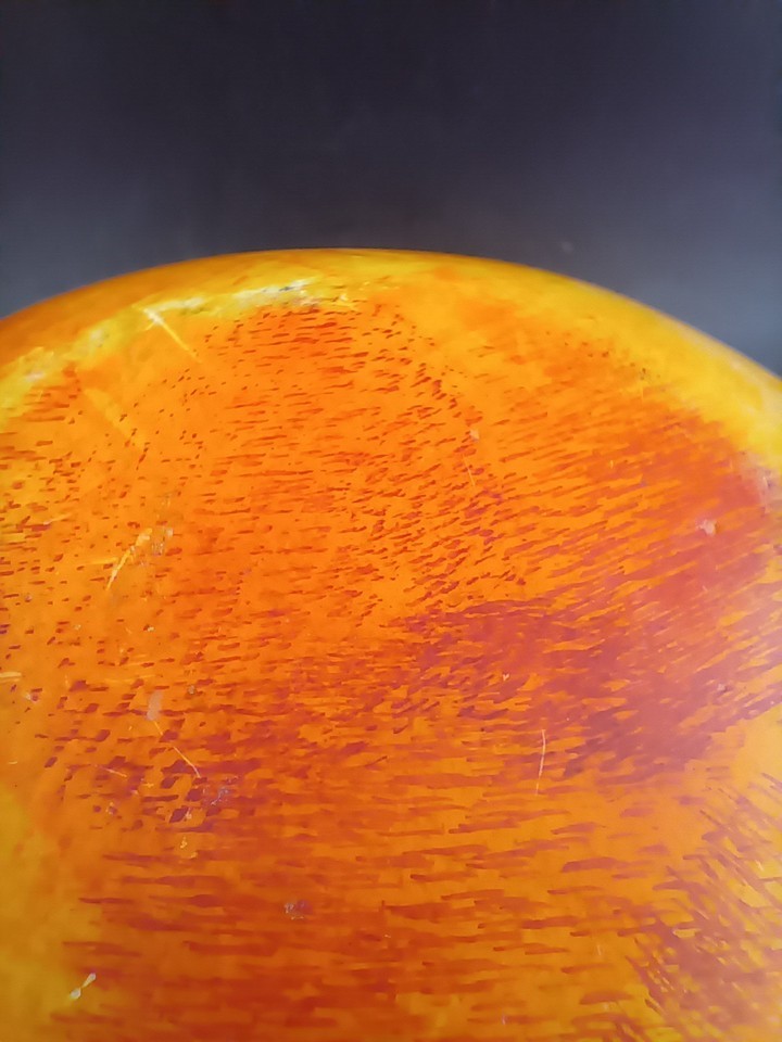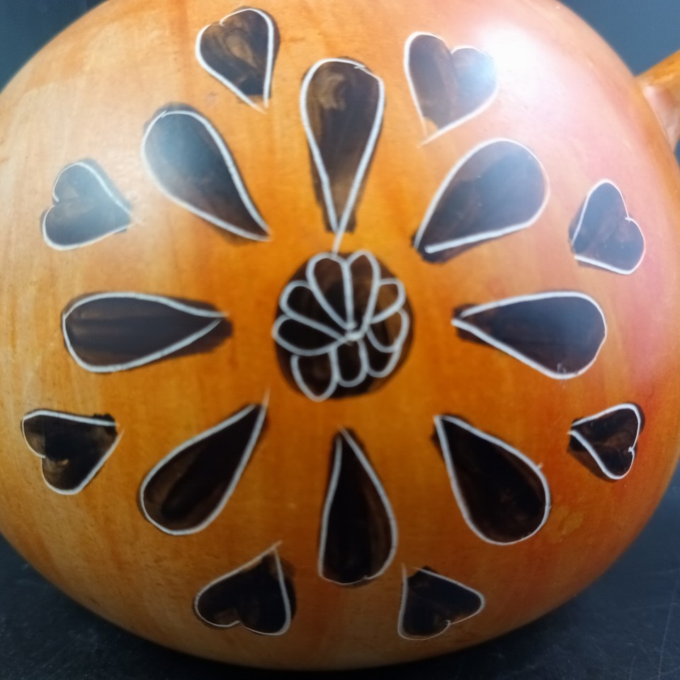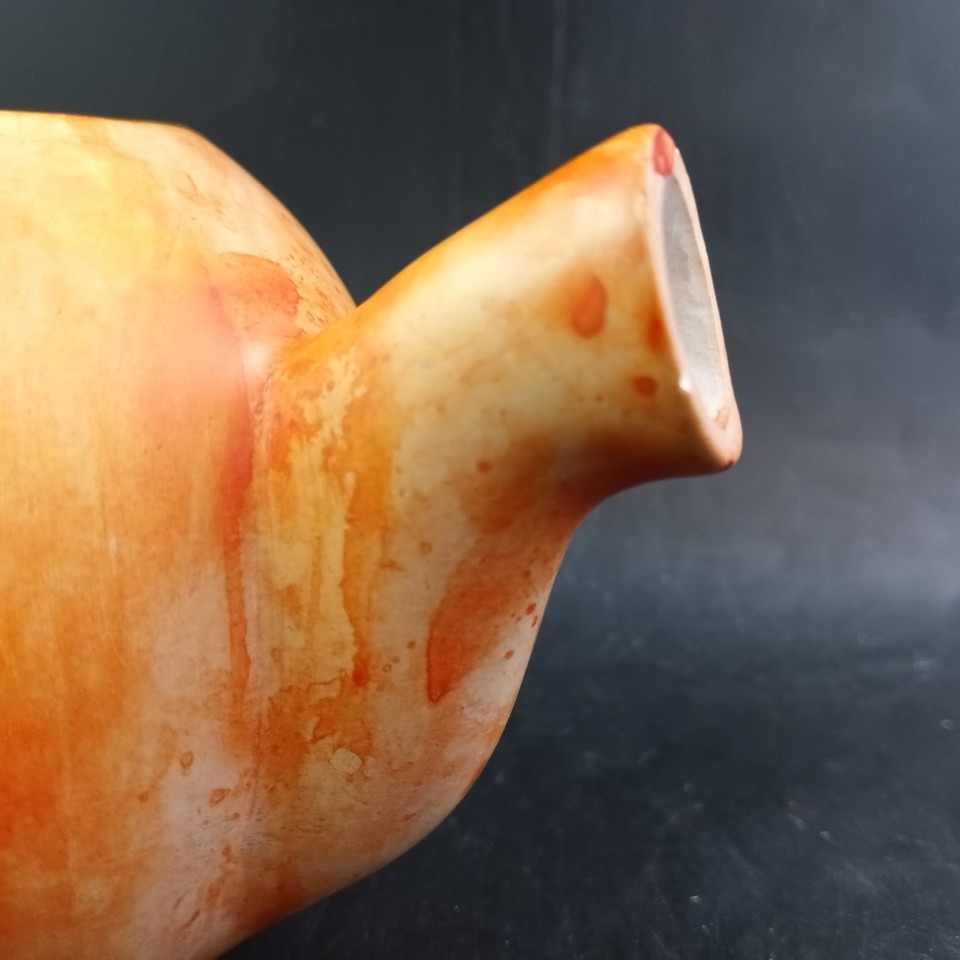 There's something special about this teapot and tea cups. When you pick the teapot up it is surprising how heavy it is and all that weight is distributed almost completely to the bottom surface. It is obviously an artisan piece but unfortunately is unsigned. There are some flea bites on the very end of the spout. Please see our store for similar items. We combine shipping.