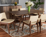 Orella Beige Faux Leather Upholstered and Walnut Brown 7-Piece Dining Set