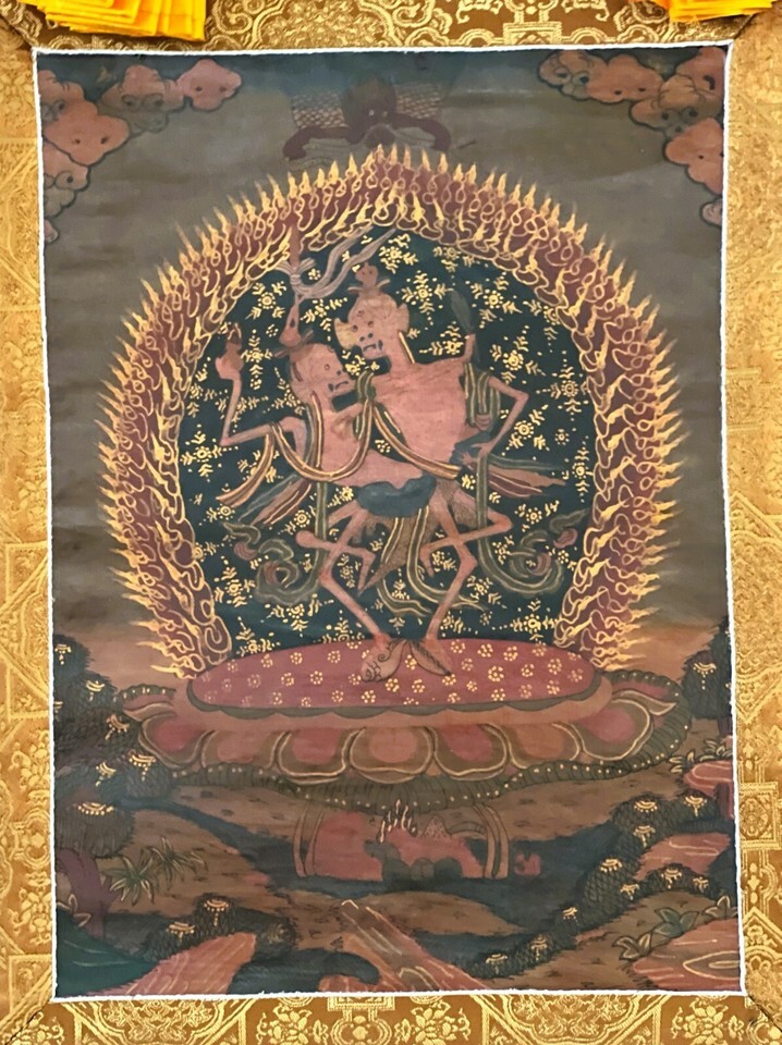 The thangka is not a flat creation like an oil painting or acrylic painting but consists of a complex subject.