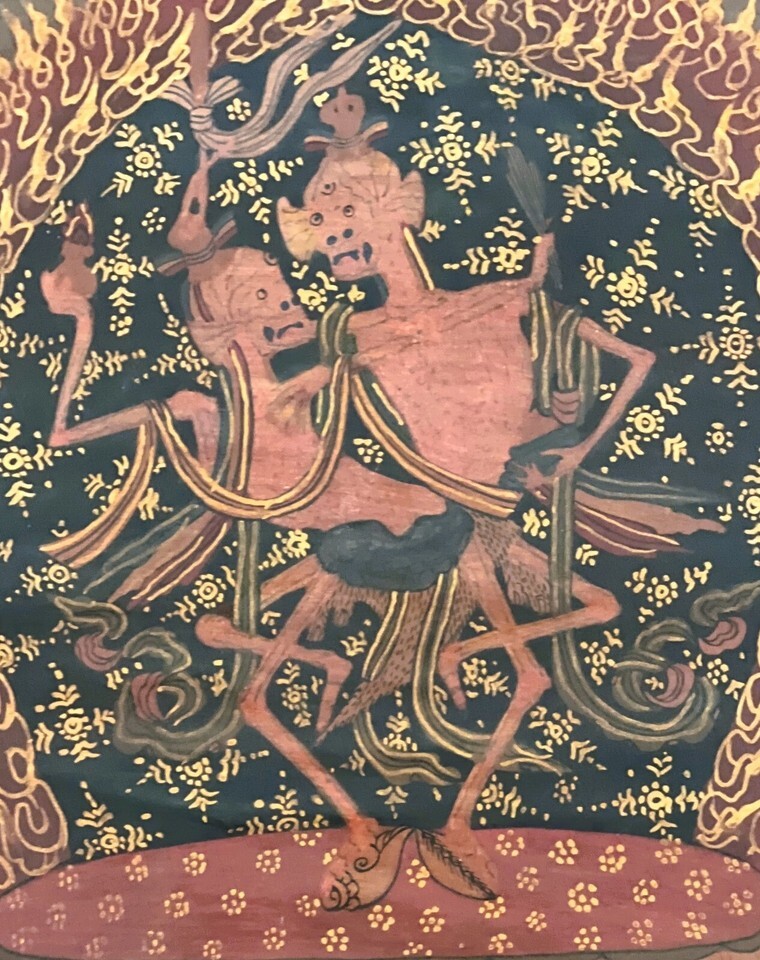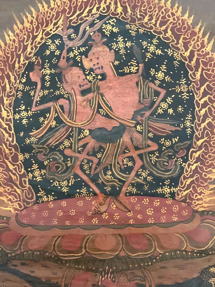 ORIGINAL CITIPATI/ DANCING HAPPY SKELETON OIL VARNISHED TIBETAN THANGKA PAINTING