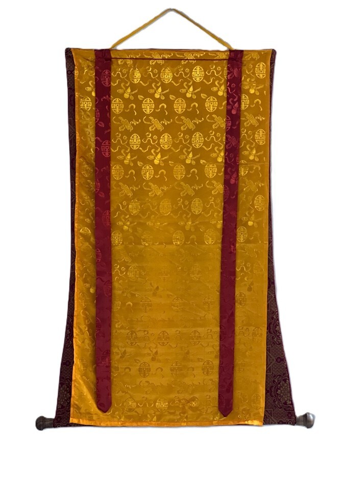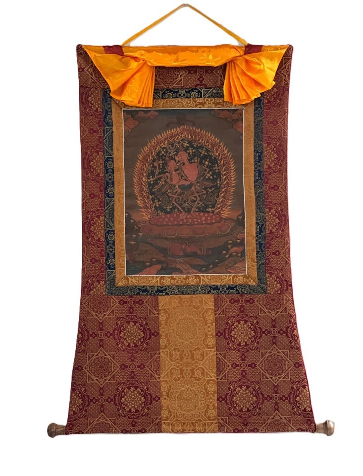 Discover the captivating world of Tibetan Thangka paintings with this stunning oil-varnished CITIPATI or CHITIPATI piece brocaded with high-quality silk. The artist's careful application of oil varnish adds a lustrous sheen and serves as a protective layer, preserving the painting's vibrancy and integrity over time.