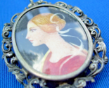 - Original Deco Hand Painted Portrait Pendant Antique Medallion 800 Silver Brooch
