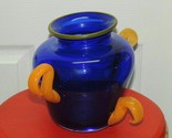 Original Heavy Art Glass Vase 8"x10" Blue & Orange Contemporary Abstract Unique