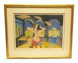 This abstract painting depicts an artist and models in an interior. The painting is signed Koen Scherperell and dated 83. The art is framed under glass in the original unopened gilt wood frame with silk matting and has a label from Brugge on the versa.