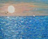 - Original Ocean Sunset Seascape Sailboat Birds Painting Impressionism Monet Style