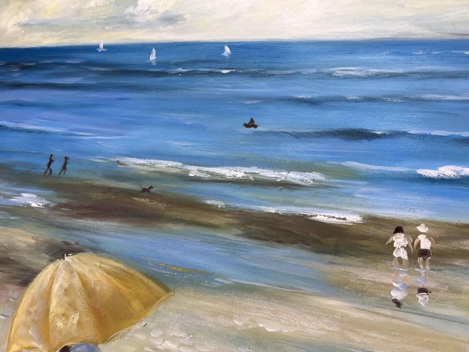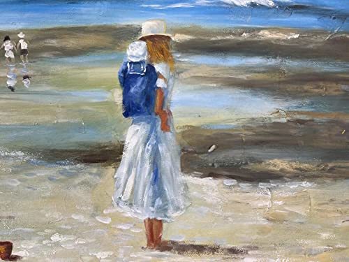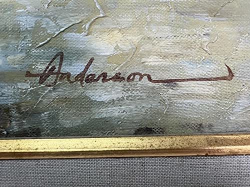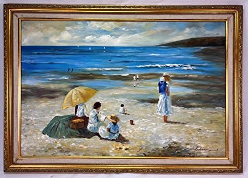 Vintage Signed lower right Anderson Oil on Canvas depicting fabulous Seascape with Family on the beach Dimensions 24" x 36" with frame 29" x 40" About Us About Us Payment Terms Returns About Us