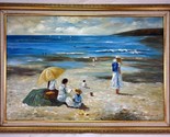- Original Oil ON Canvas Signed Compatible with Anderson 19TH New York Beach
