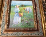 ORIGINAL OIL ON CANVAS LADIES IN THE PARK SIGNED 20 x 19" FRAMED