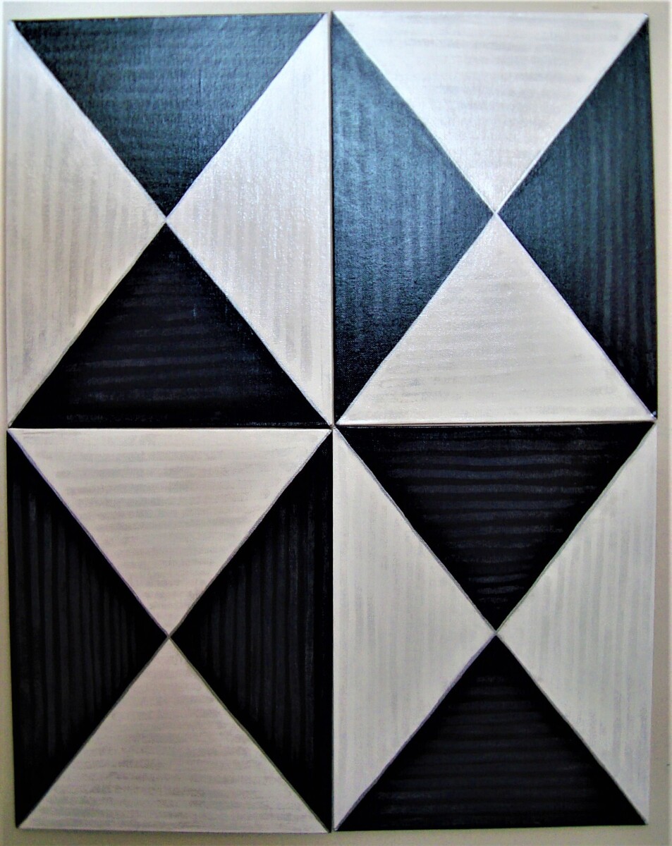 'Separationalism: Blurring of The Truth And The Lies' by Carla Dancey. During the height of the pandemic, I began to separate everything from everything in my artworks. Each triangle has some whitewashing, similar to how the science and the truth and the lies all seemed to be blurred at a time when we needed to be able to separate the truth from the lies more than ever. Each triangle is separated or isolated by a metallic silver lining. Make your space coordinate perfectly with this matching set of paintings. They can be used to create coordinated focal points and accents throughout your space. These would be great in an office or in any room where you want to create a professional, complimentary ensemble. This set of four original black and white acrylic paintings can be hung together to make a larger painting or they can be hung individually around your space. They can also be hung horizontally or vertically. Each painting is on an 11" x 14" strong, durable, pet and child friendly canvas board. If they are hung as one painting, it will cover a minimum surface area of 22" x 28". The artworks have had two protective gloss varnish coatings applied for years of added protection. Each painting is titled and signed on the back. The paintings come with hangers attached so that you can hang them with or without frames.