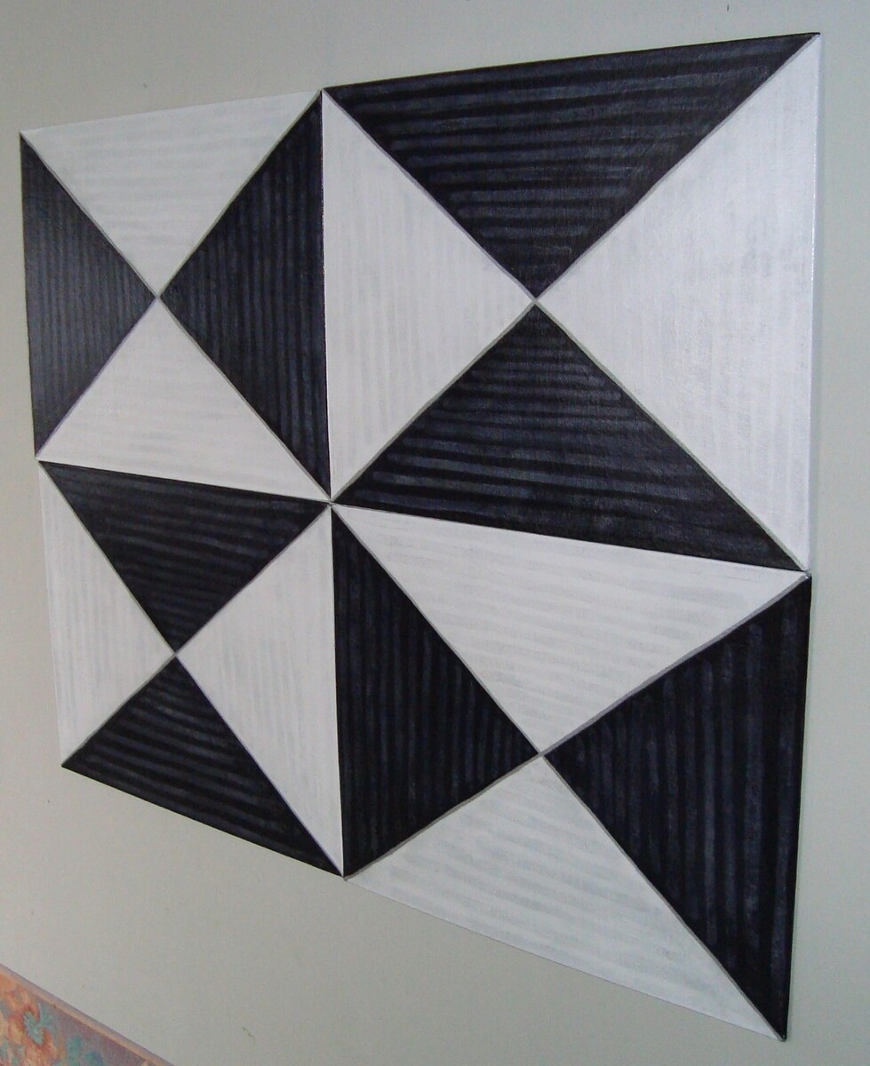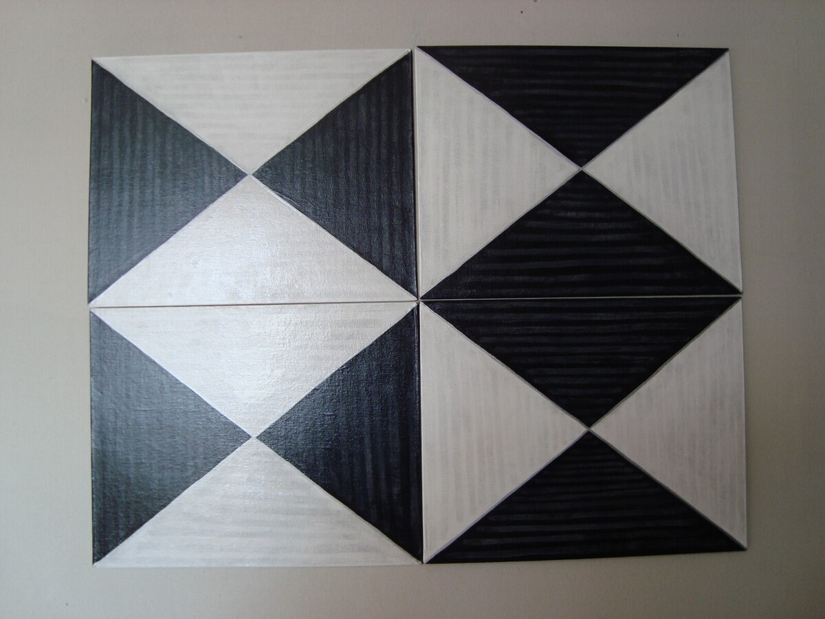 - Original Triangles Signed Painting Geometric Black White Art Set By Carla Dancey