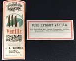 This is a nice pair of bottle labels for Pure Extract Vanilla, flavoring for Ice Cream, Custards, Jellies, Pastry! Manufactured by J. A. McDonald, Central Penn's Chemical Works , Reedsville, PA! This is NEW OLD STOCK, so the real deal. Pretty cool if your outfitting your own stash!