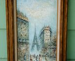 - Original textured oil on canvas painting of Eiffel Tower Paris signed wood frame