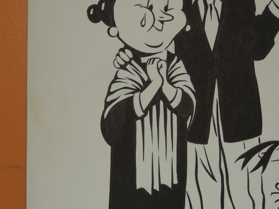 ONE ORIGINAL INK DRAWING ON PAPERBOARD, UNSIGNED, AND YOU CAN STILL SEE THE ORIGINAL PENCIL MARKS. THIS IS ONE OF THREE I AM SELLING, THIS AND ONE OTHER HAS THE APPEARANCE OF THE CARTOONS THAT WERE SHOWN PRIOR TO MOVIES AT THE THEATRE DURING THE 60's AND 70's. PLEASE LOOK AT THE PICTURES, AS I AM NOT AN EXPERT.