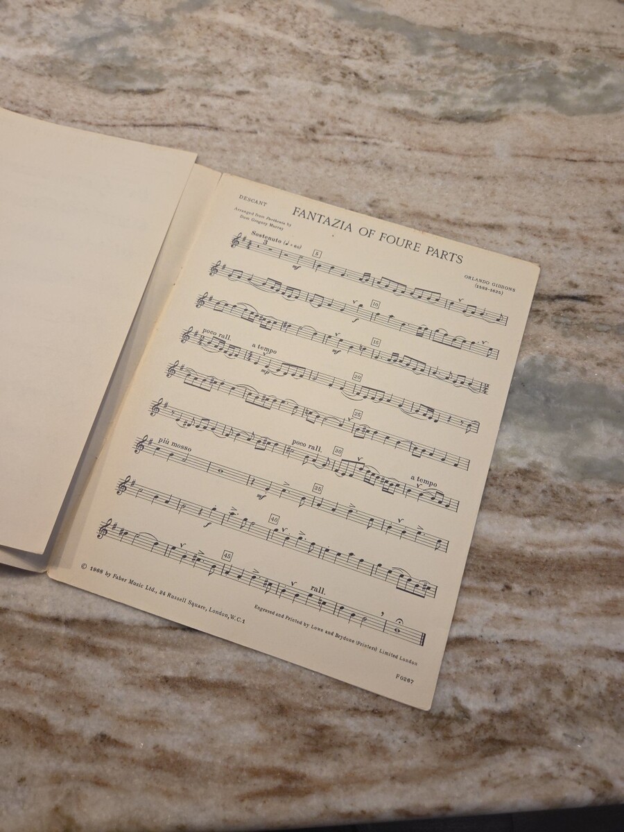 Orland Gibbons: Fantazia of foure parts for recorder quartet: musical score. Condition is Very Good. Shipped with USPS First Class.