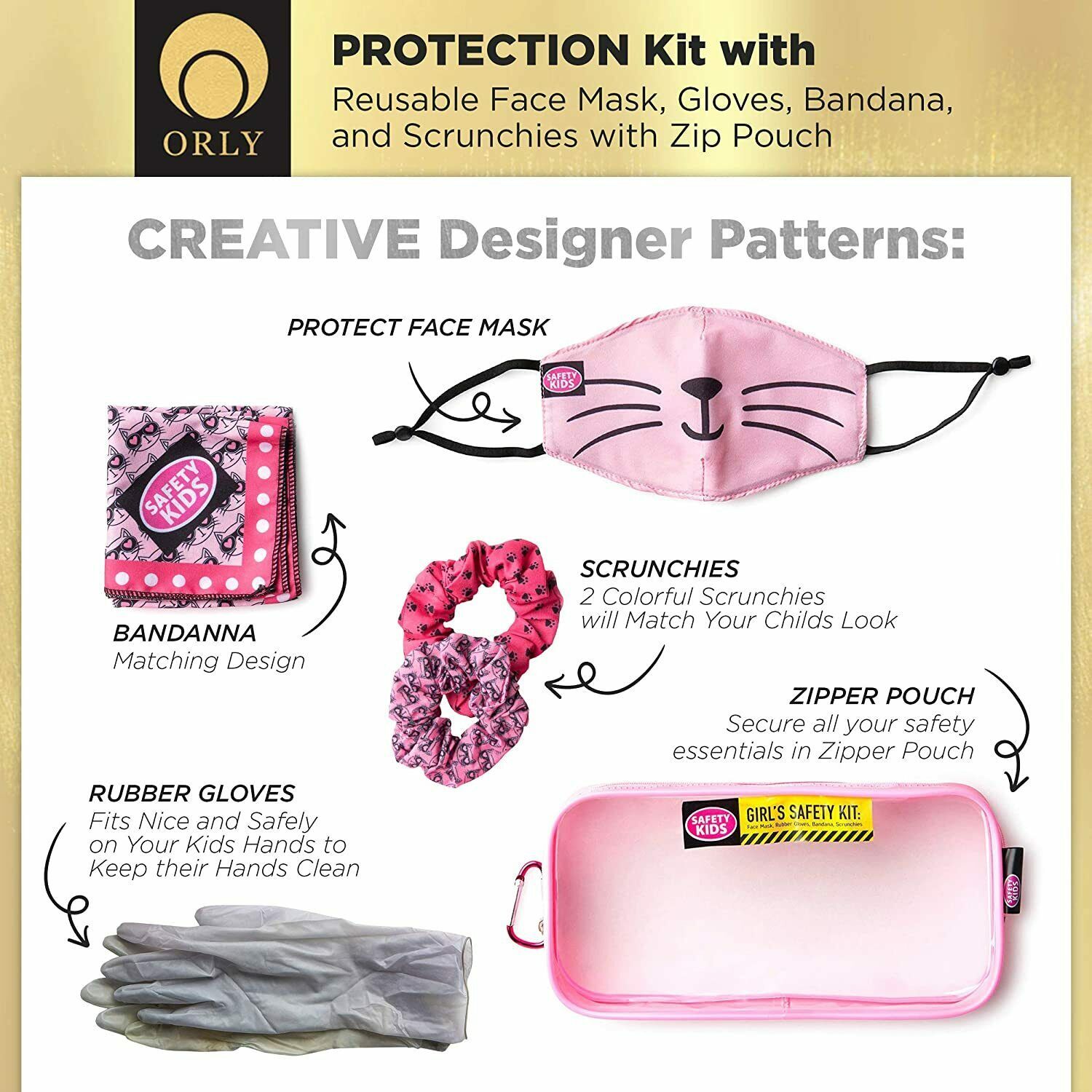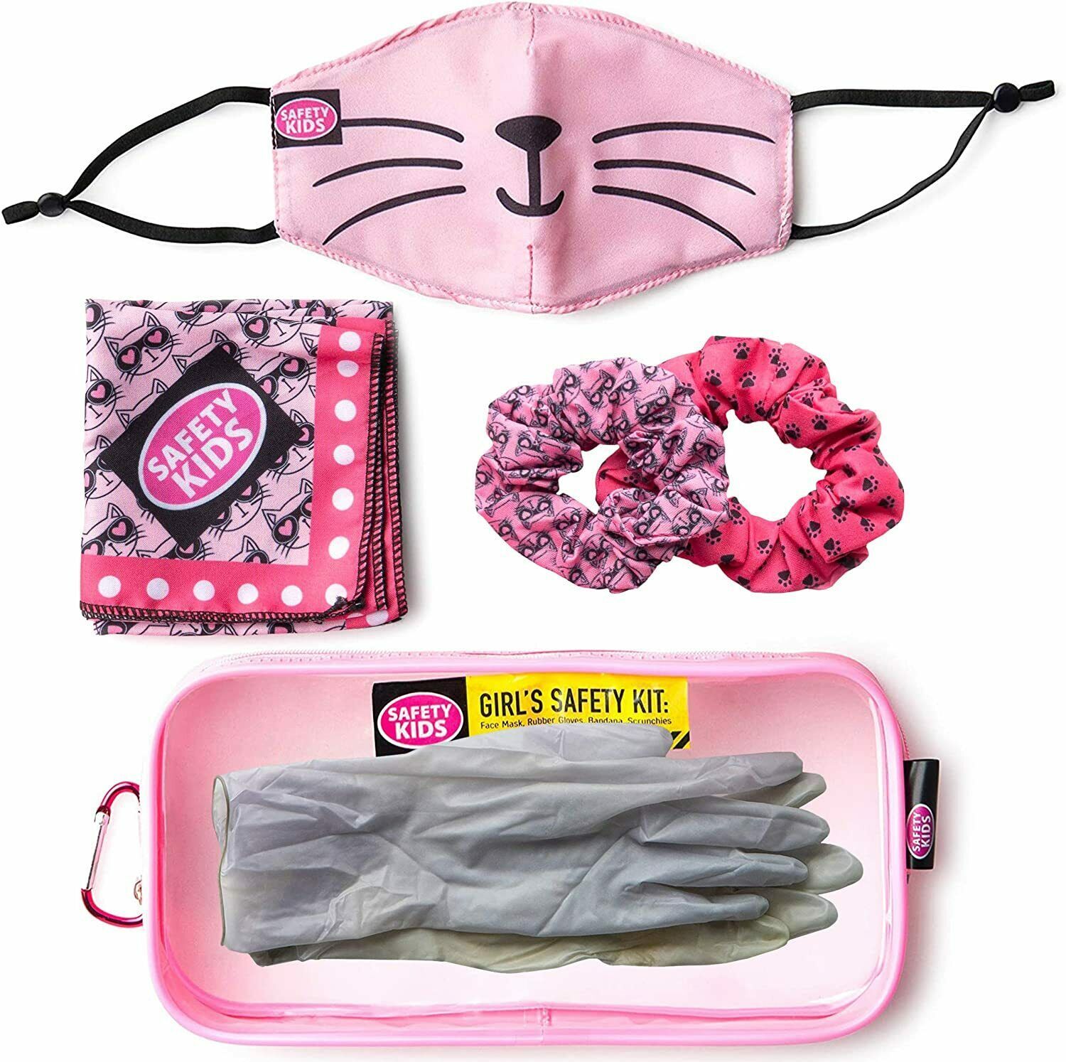 INVEST IN A COMPLETE MASK SET FOR YOUR KID?S PROTECTION: Combining all the necessary accessories your little boys or girls need to stay safe and healthy, this kid?s protective kit includes: a reusable face mask, a versatile bandana, a pair of reusable gloves, 2 matching scrunchies (for the girl?s kit) and a clear zipper pouch to keep everything in one, convenient place