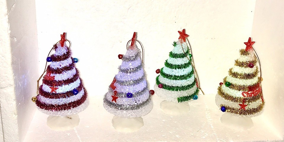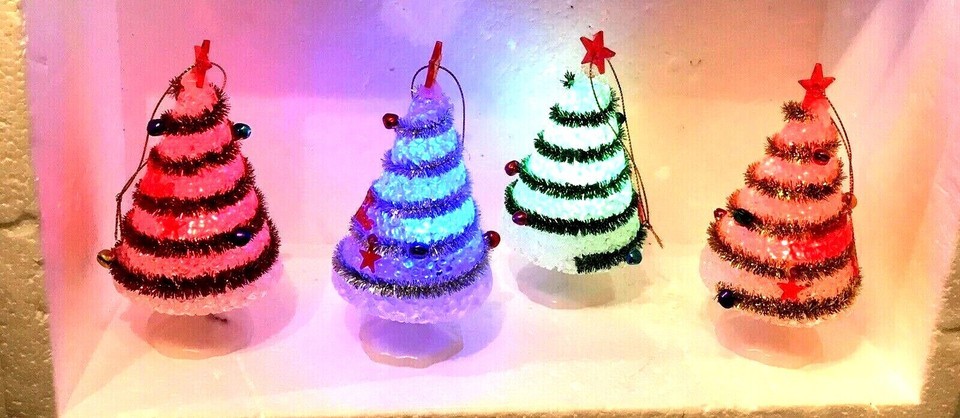 MORPHING PULSING SET OF 4 CHRISTMAS Multi Color Christmas Tree LED Ornaments