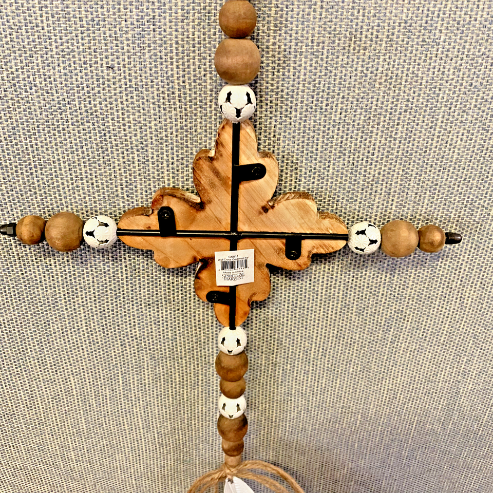 You are purchasing a very nice wall ornate cross, that comes with different materials, wood, jute metal. (The white rounds are metal as well as the feather on the bottom).