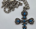 Ornate Filigree Cross Pendant Necklace 1980s Southwest Faux Turquoise Vintage