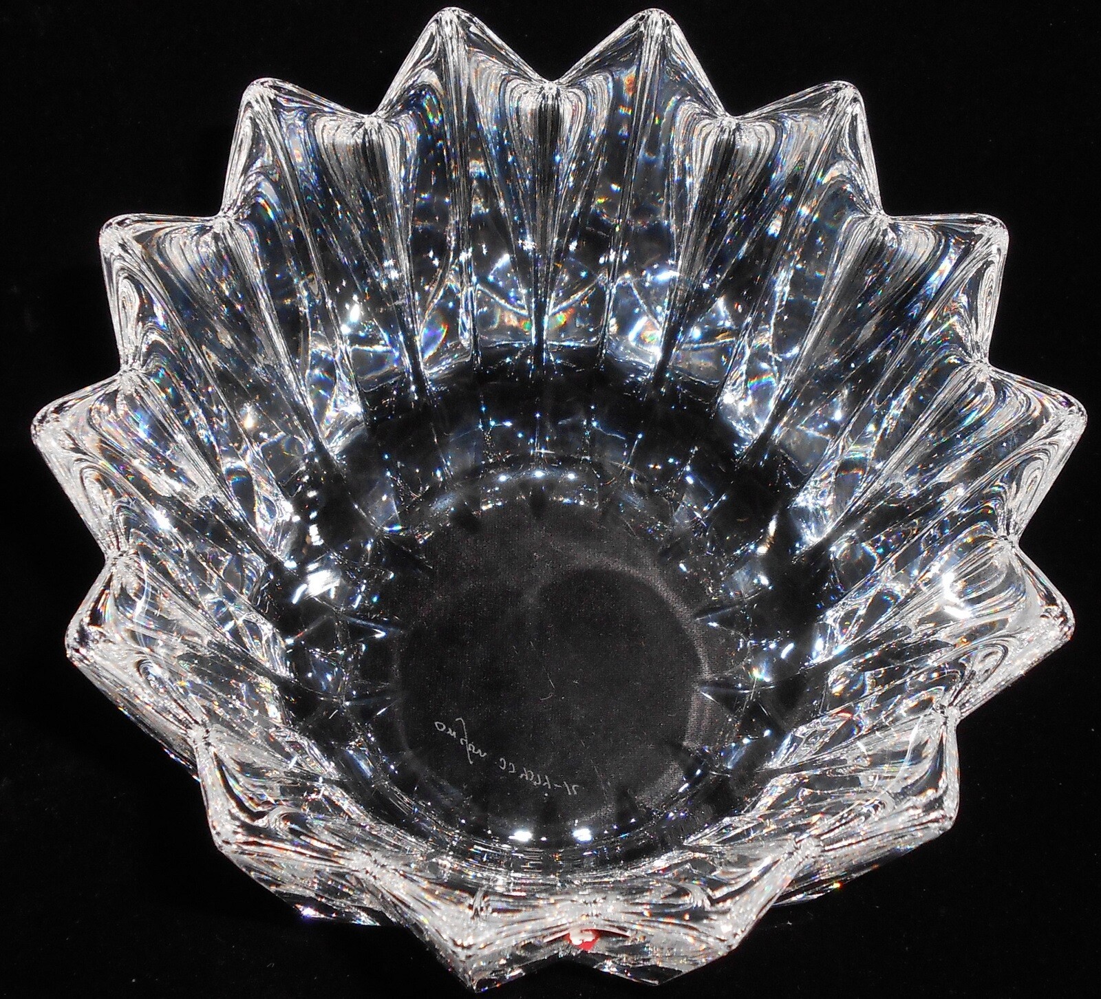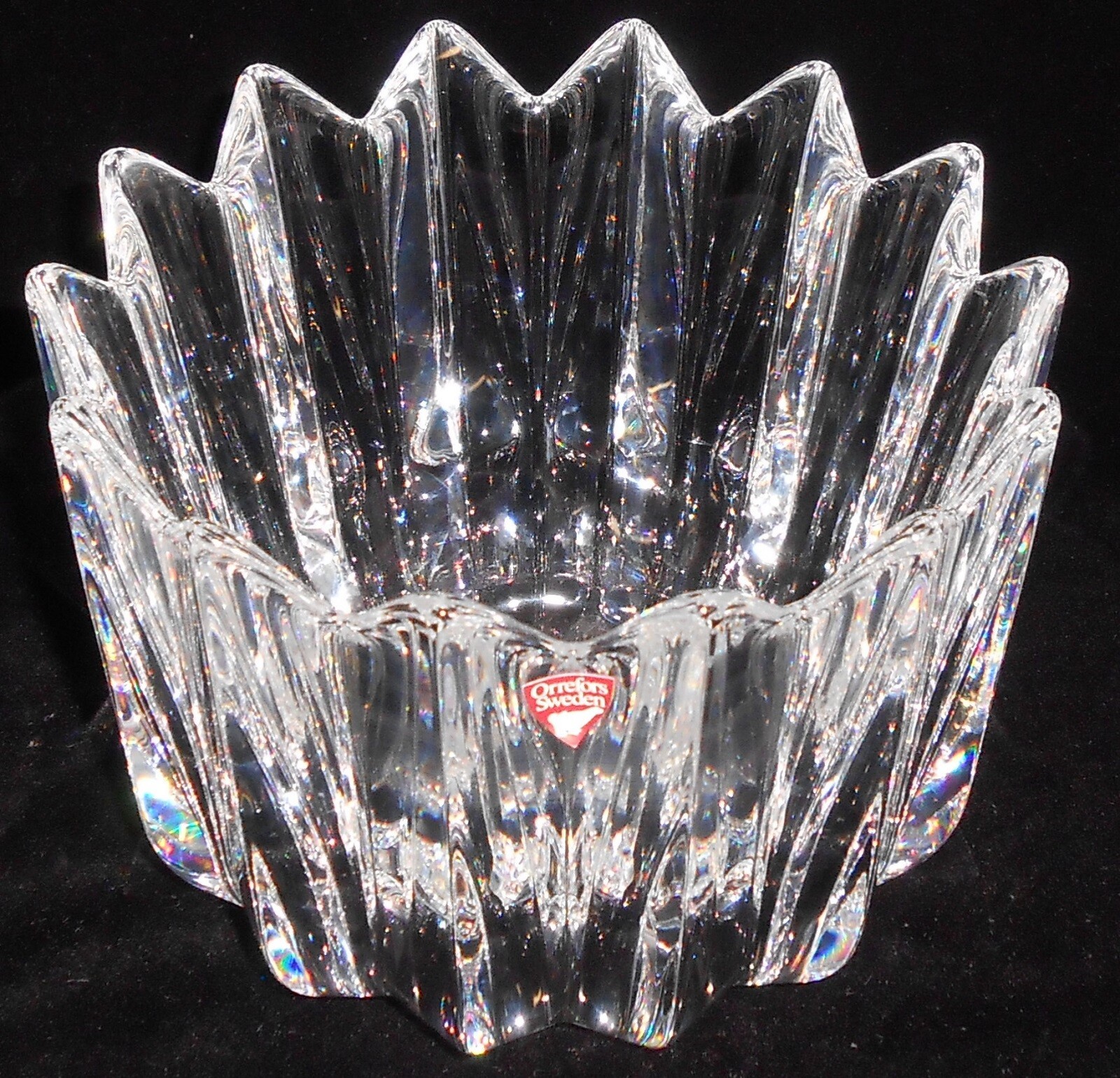 This is a beautiful Crystal Bowl from Orrefors and Made in Sweden in the Fleur Pattern that measures approx 6 1/4" across x approx 4 1/2" tall. It is signed in the base and in great pre-owned condition with no chips or damage.