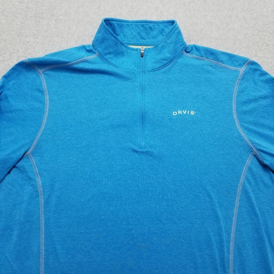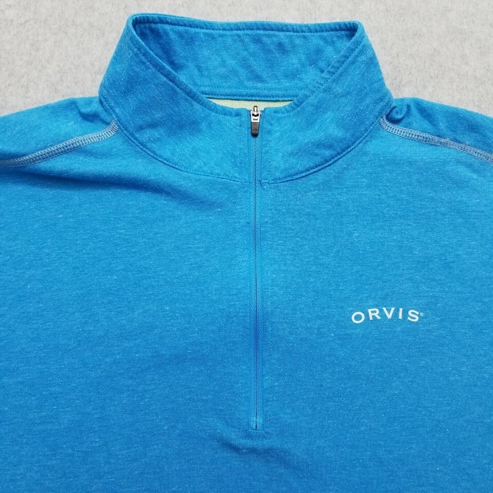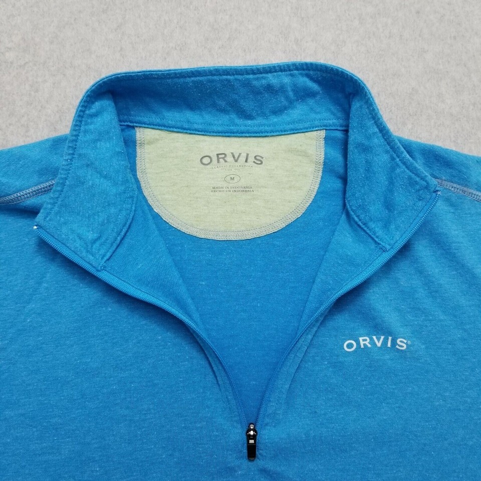 - Orvis Sweatshirt Mens Medium Blue Long Sleeve Mock Neck Zip Pullover Lightweight