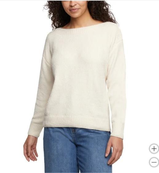 - Orvis Womens Sweater Ivory Chenille Boatneck Long Sleeves Textured Polyester