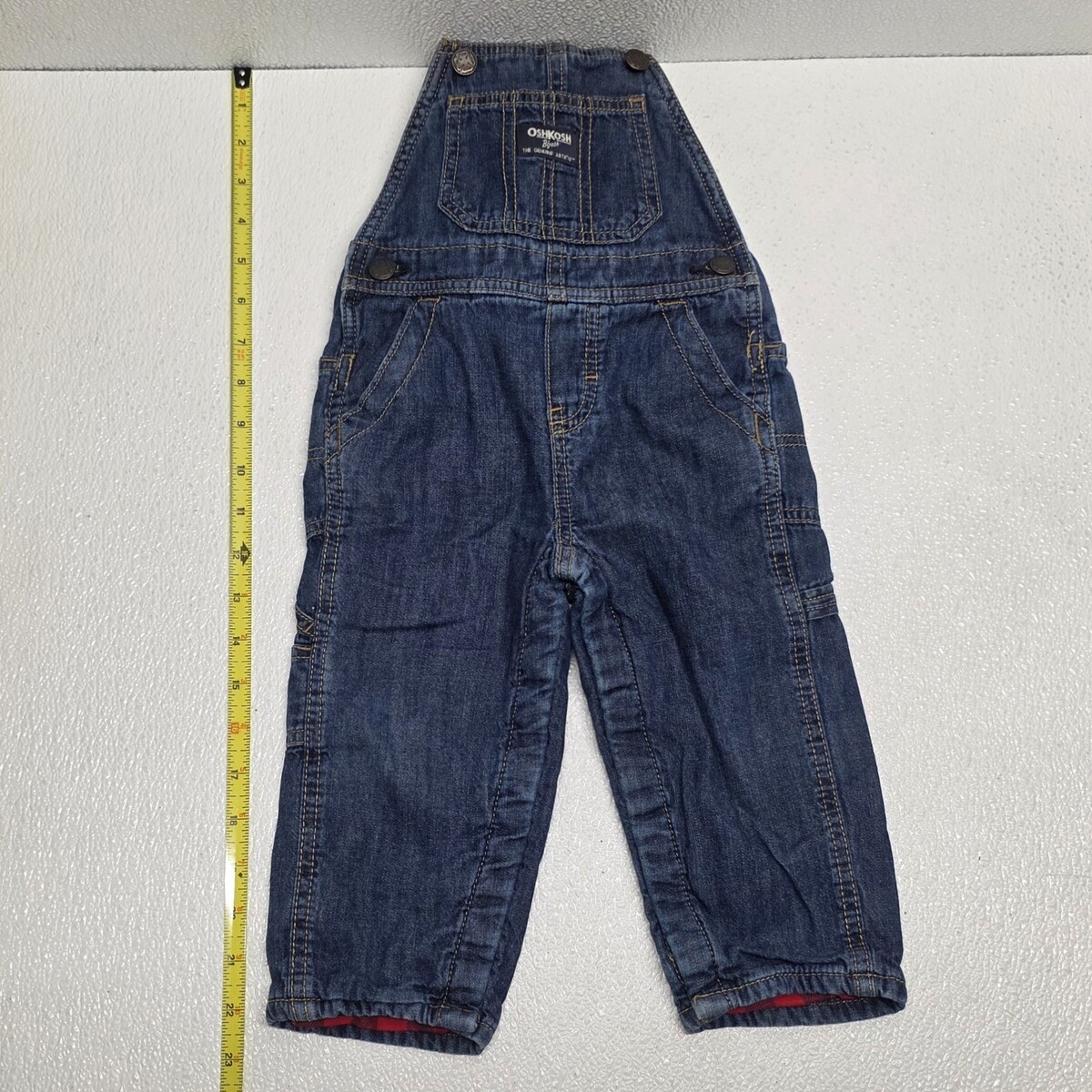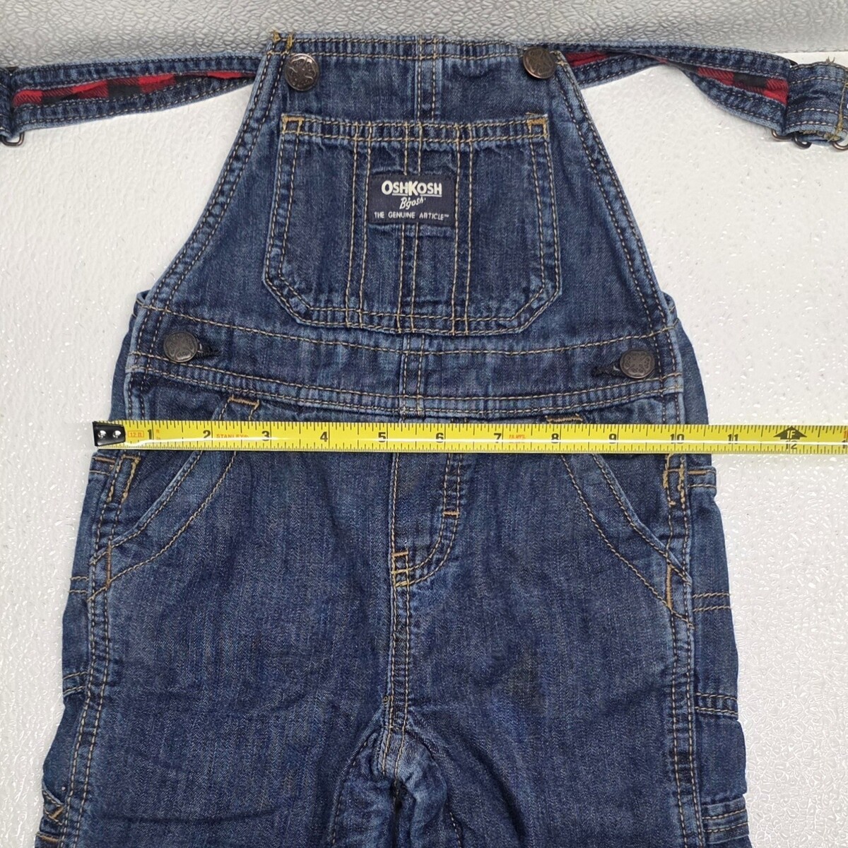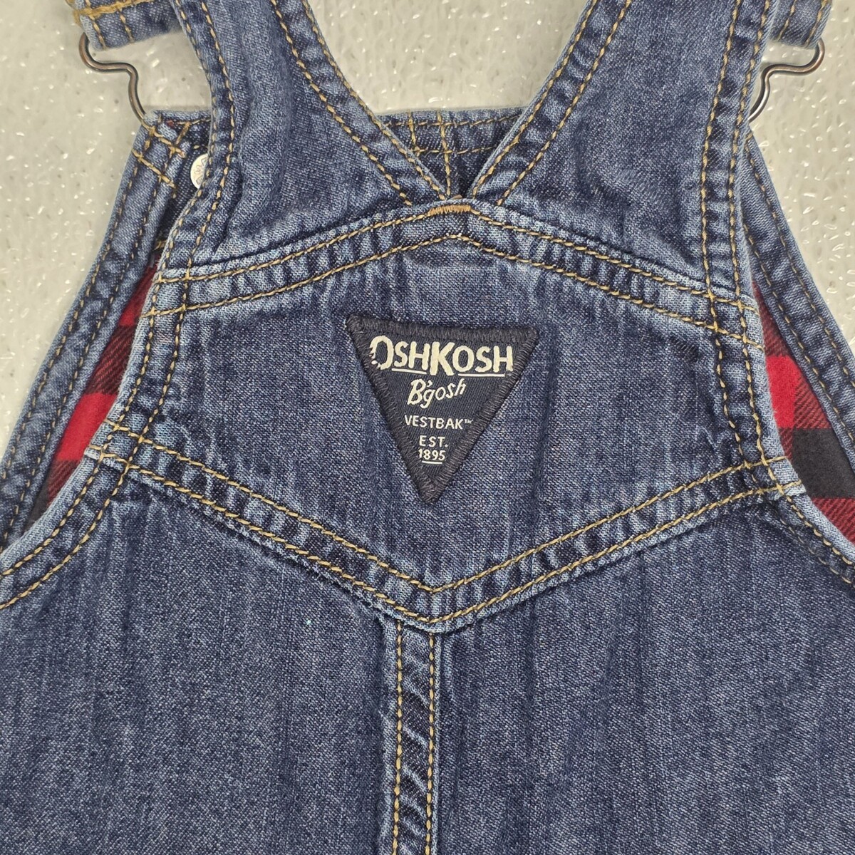 Osh Kosh B'gosh VESTBAK Overalls Baby 18M Blue Denim Red check Lined Cotton. Images show actual item that will ship.