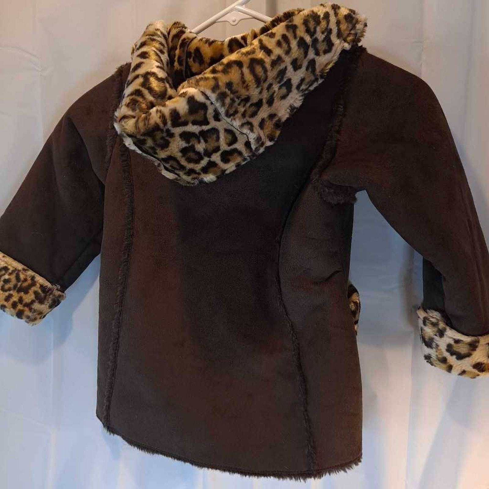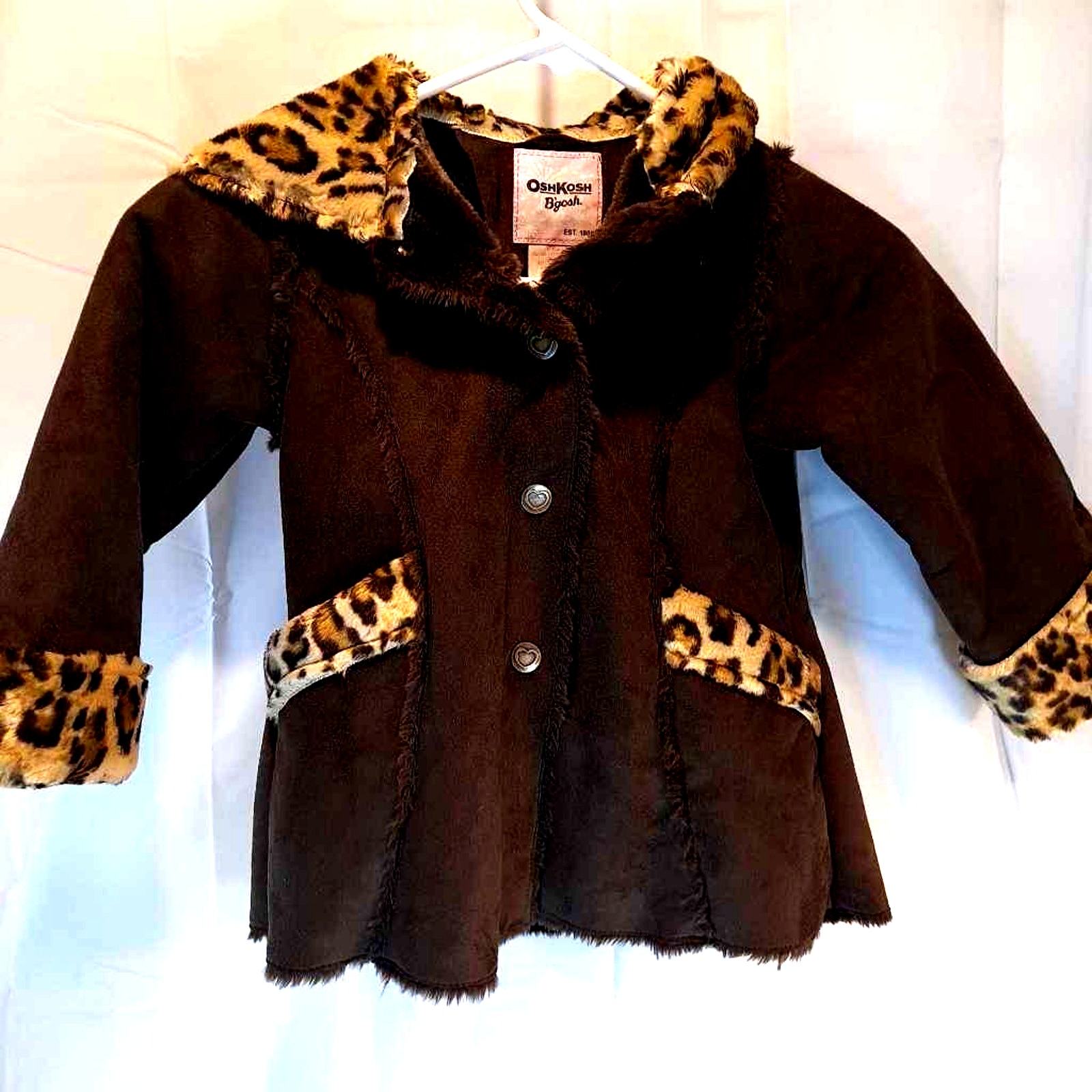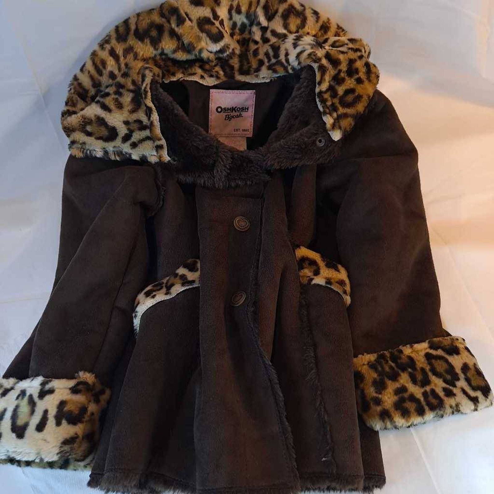 - OshKosh B'gosh Girls Basic Coat Brown Leopard Hooded Mid-Length Long Sleeve 4