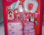 New in package. For ages 3 years old and up. Detailed Design features realistic travel supplies with a kitty-print luggage and 2 carry bags that zip open to pack for any adventure! Includes: A kitty-print luggage and 2 extra carry-on bags, neck pillow, pretend music player, headphones, passport, boarding pass with holder, toothbrush, toothpaste, dental floss, nail file, nail clipper, comb, pack of gum, snack, and travel cup.(all items are pretend). Comes from a smoke- free home.****PLEASE NOTE- I do combine shipping cost on most of my items, message me before you purchase.