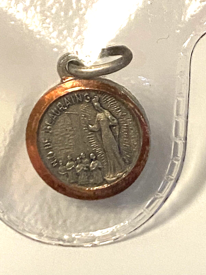 You are purchasing an encased prayer card, charm medal 1 decade rosary ring of St. Our Lady of Beauraing, also known as the Lady with the Golden Heart. Was brought from Belgium. Approximate measurements: 4" X 2 3/4". **Please note** the print is small. **This is the last one in stock***