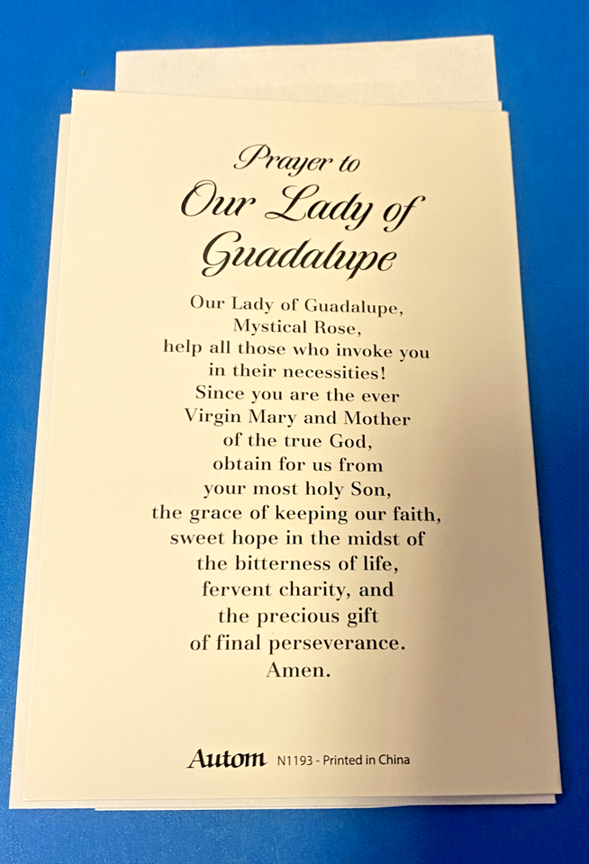 You are purchasing a card stock blank note card with an image of Our Lady of Guadalupe. Contains a prayer onthe back.