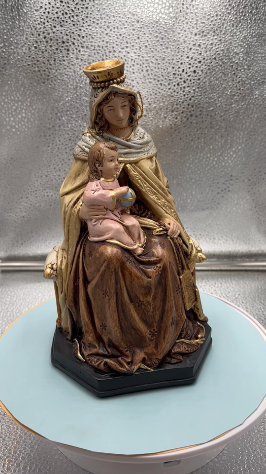 You are purchasing a beautiful 8" statue of Our Lady of Mount Carmel. She is known as the patroness of the Carmelite Order and also the devotion of the brown scapular.