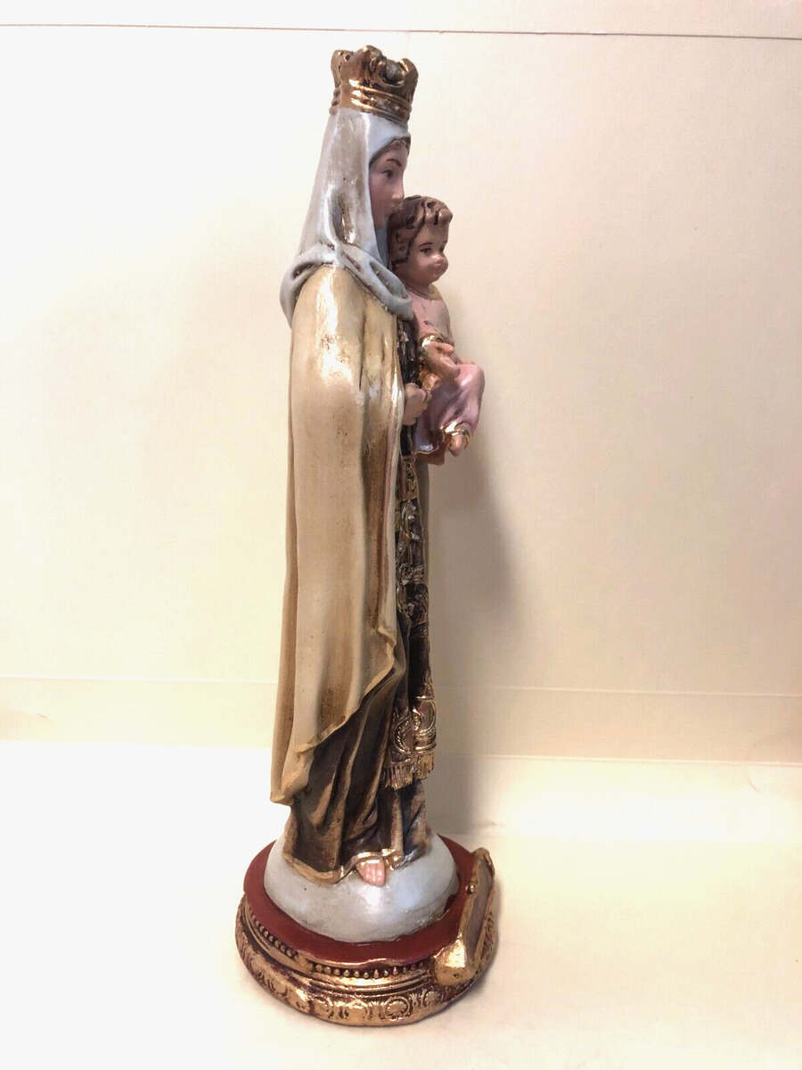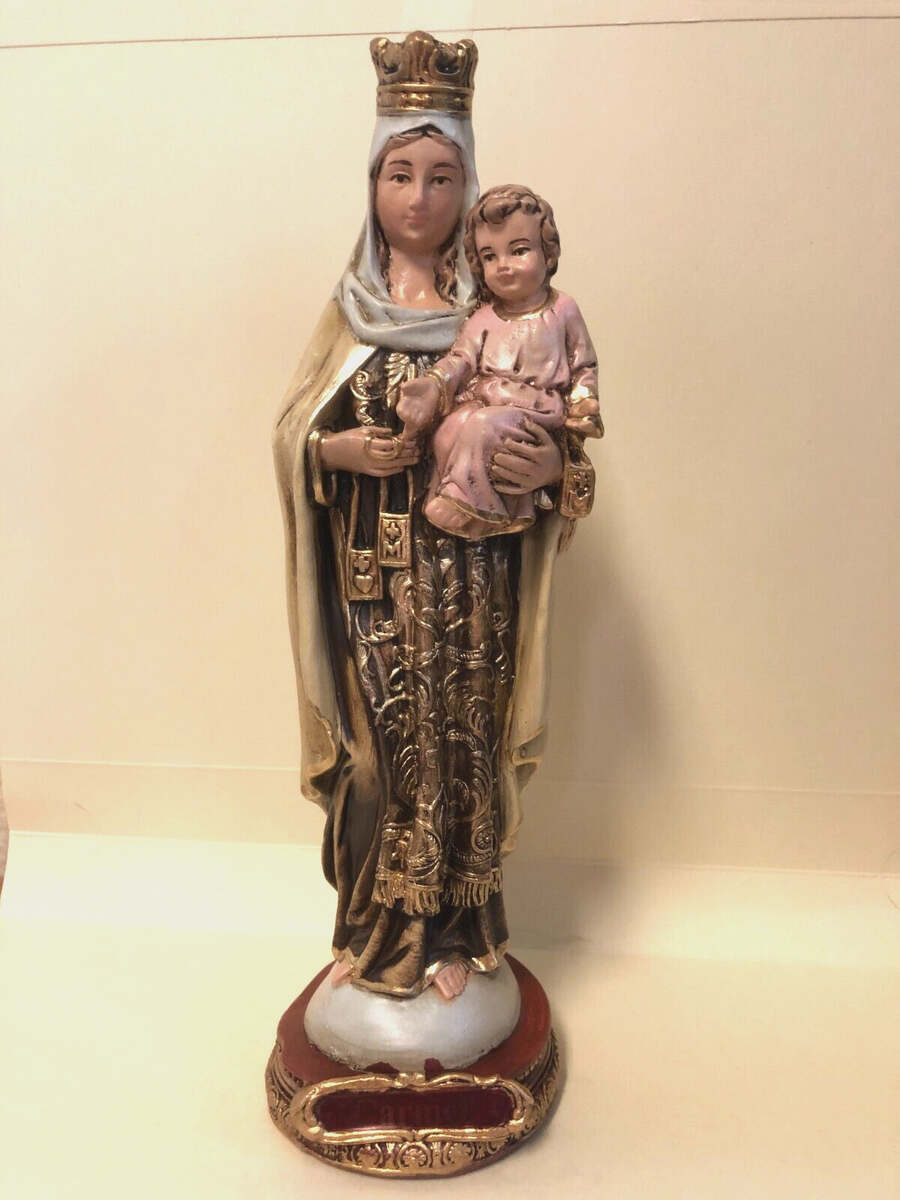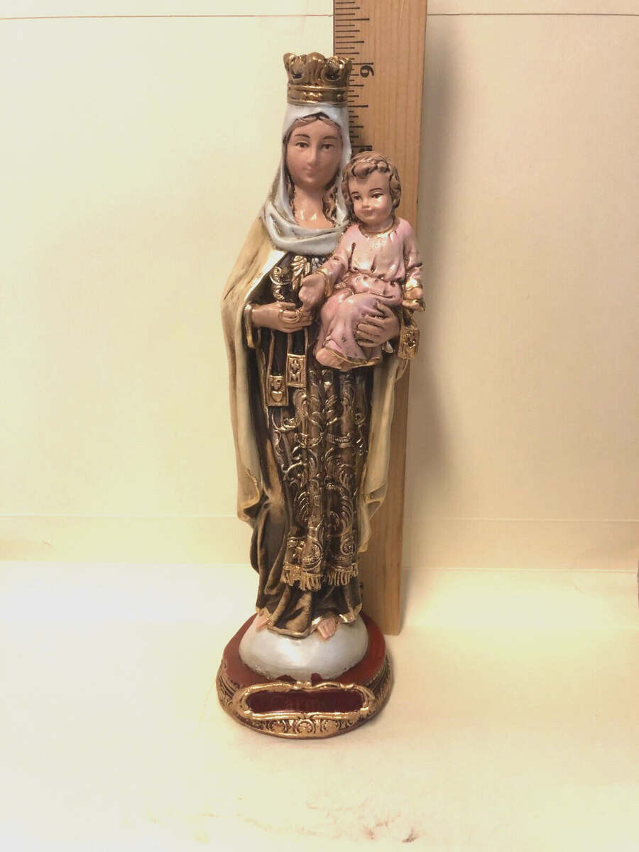 You are purchasing a beautiful 9" statue of Our Lady of Mount Carmel. She is known as the patroness of the Carmelite Order and also the devotion of the brown scapular.