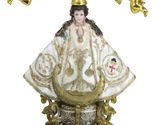 ? Our Lady of San Juan De Los Lagos is adorned with a resplendent golden crown and surrounded by celestial angels carrying a banner. Crafted with utmost reverence, this figurine encapsulates the divine beauty and grace of the revered Virgin Mary. The intricate detailing captures the serenity in her expression, while the radiant golden crown symbolizes her regal presence. Encircled by angelic companions, each delicate wing and ethereal detail adds to the celestial aura of this sacred piece.