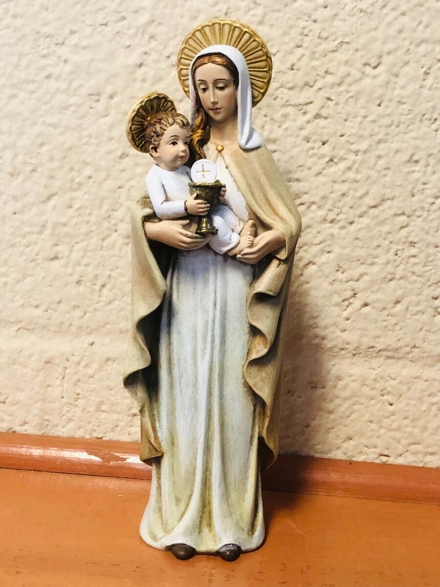 You are purchasing a beautiful 8" statue of Our Lady of the Sacrament Child Jesus. This is a special statue, specially if you are close to the presence of Our Lord in the Eucharist and venerate his presence.