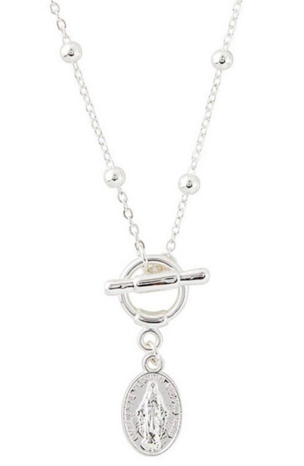 You are purchasing a very nice silver stone neckalce of Our Lady of the Miraculous Medal.