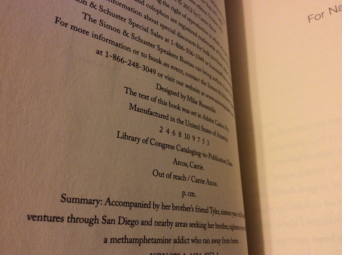 OUT OF REACH by CARRIE ARCOS - Hardcover - SIGNED FIRST EDITION - Free Shipping