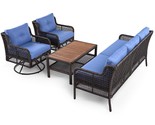 - Outdoor 4-Piece Blue Wicker Patio Set 5-Person Swivel Chairs