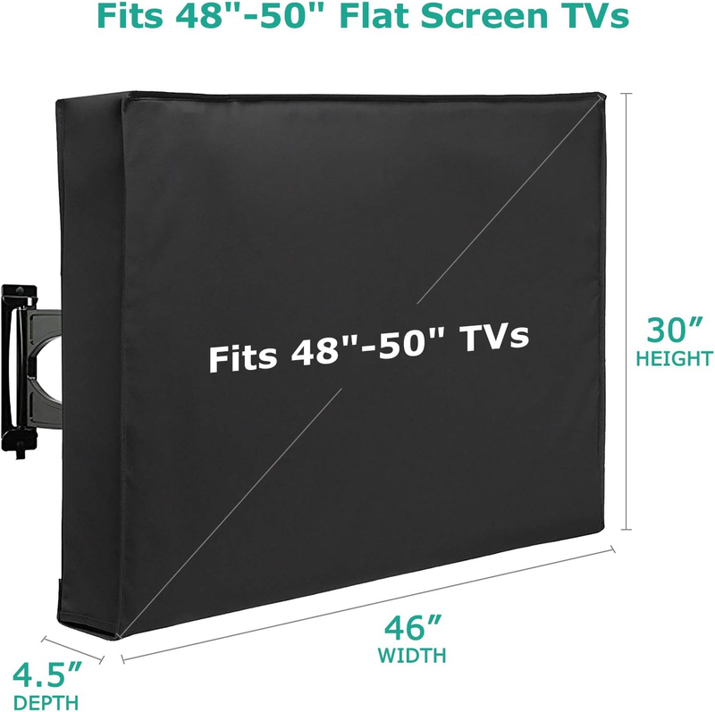 360 TOTALLY COVERED - with a dimension of 46"W x 30"H x 4.5"D, the TV dustproof cover fits most 48"-50" TVs. Outside TV covers with bottom cover and high quality industrial velcro straps which can securely seal the entire TV, avoid seeper and dust, provide 100% coverage against water
