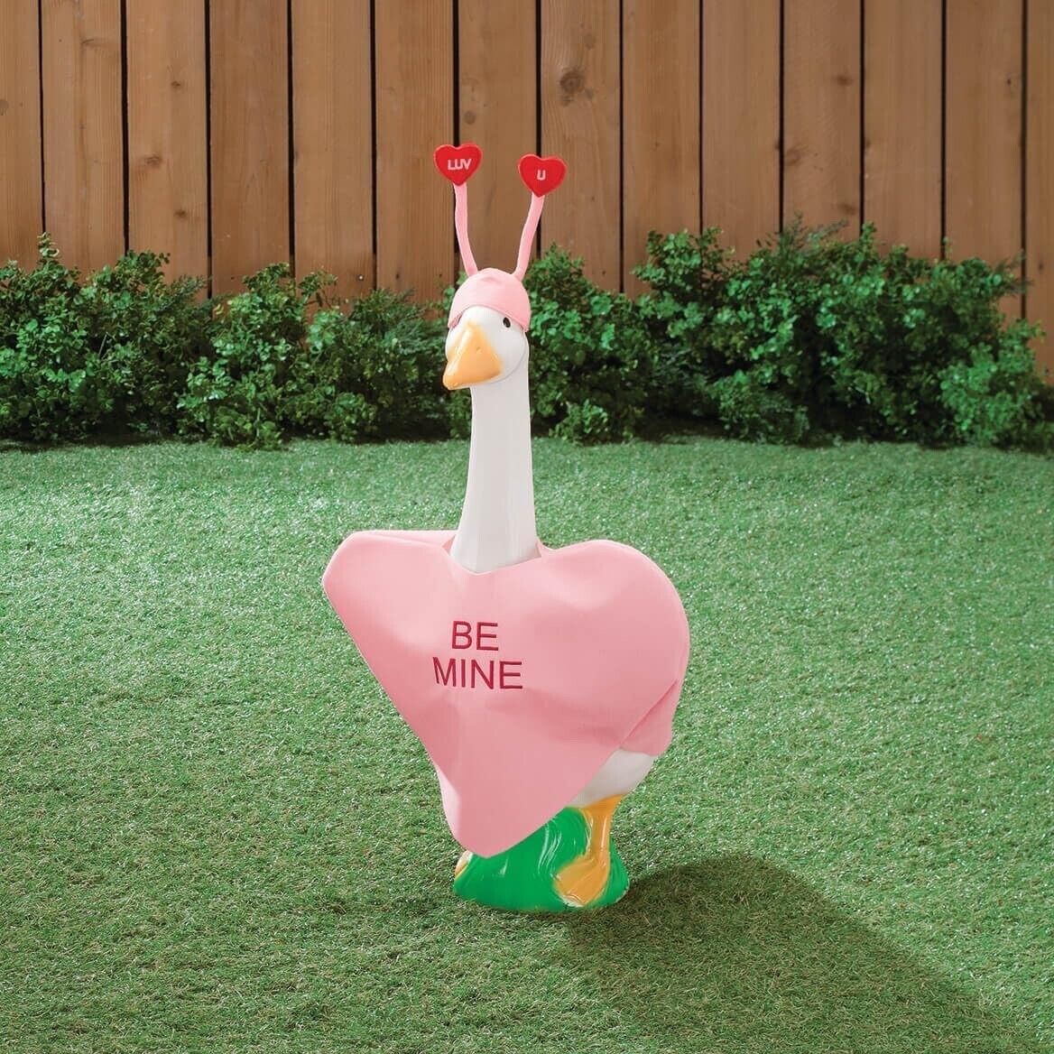 Your lawn goose will be the talk of the neighborhood this Valentine?s Day, dressed as a cute Conversation Heart! Complete with the classic ?Be Mine? plea, our pink Conversation Heart goose outfit with ?Luv U? cap is dandy as candy?turning your everyday goose into a holiday sweetie. Polyester; for indoor/protected outdoor use. Spot clean.